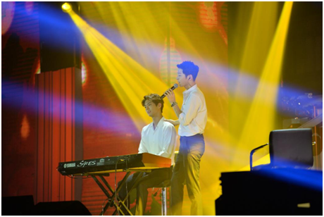 韩国艺人朴宝剑作为特别及粉丝来到现场为宋仲基助阵,,,,调皮的仲基欧巴识破预谋惊喜,,,,并且故意安排二次出场“表露惊讶”。。随后仲基欧巴邀朴宝剑弹琴伴奏,,送上《太后》的主题曲《少女》,,两人第一次的合作可谓默契连连!!!